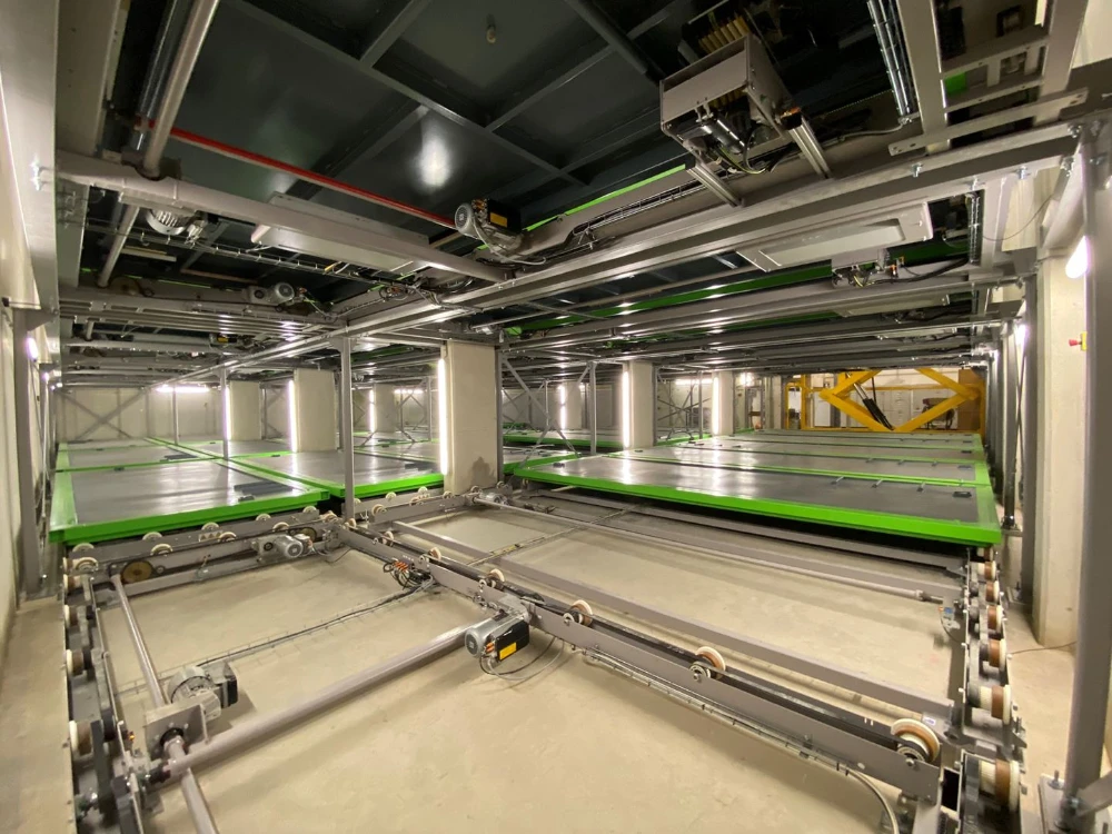In de dubbellaags kelder, onder het in 2022 gerealiseerde appartementencomplex “De Karel”, bevindt zich een automatisch parkeersysteem voor auto’s. Het parkeersysteem biedt plaats aan totaal 53 auto’s, waarvan 28 elektrische laadplaatsen. Door het gebruik van het automatische parkeersysteem worden de twee verdiepingen van de kelder optimaal gebruikt. Het automatisch parkeersysteem is in 2022 gerealiseerd door Lödige Industries.